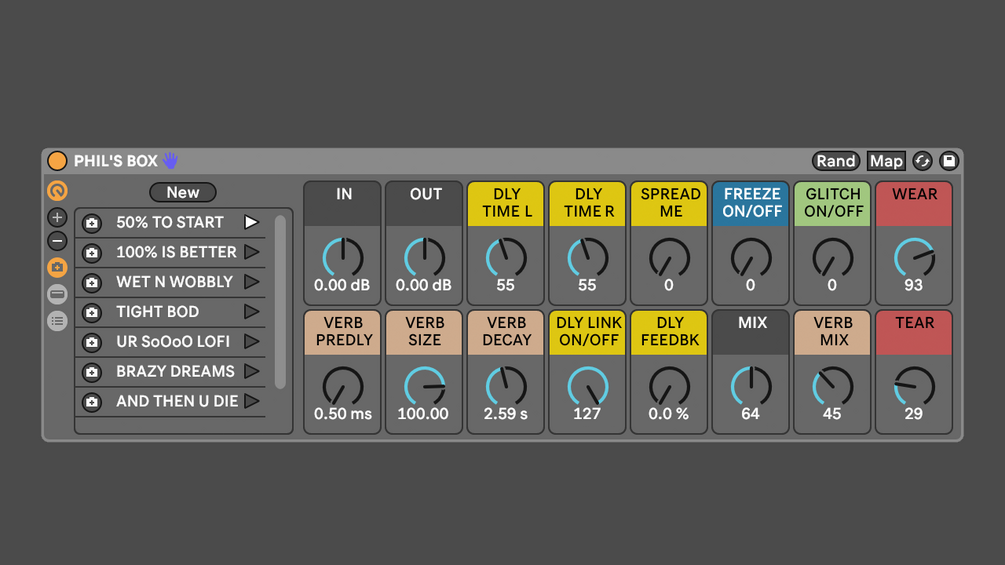 PHIL'S BOX is an all-Ableton plug-in FX rack that I built to mimic a modular system I used to own. I don't know why I ever sold it, but I did, so I made this to fill the gaping hole it left in me.